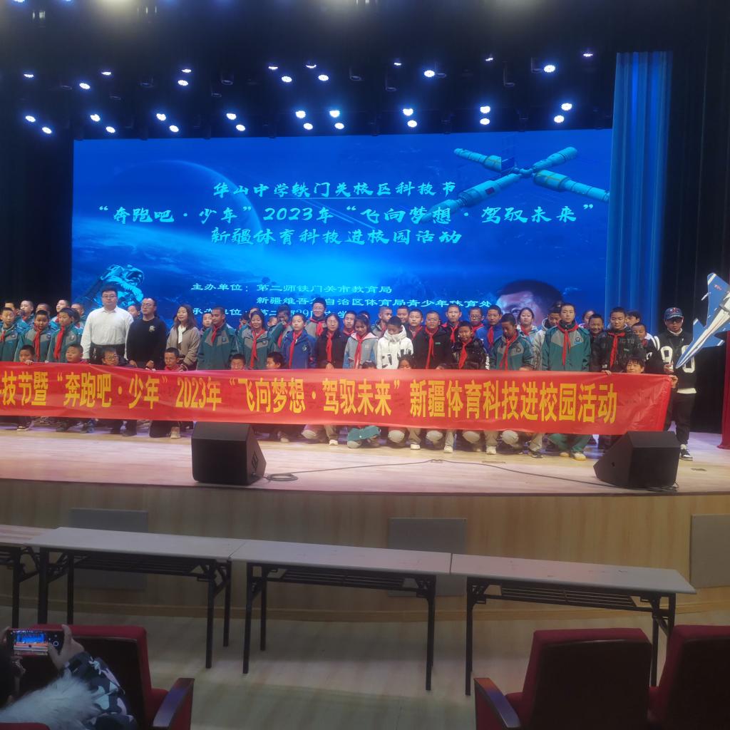 近日,由巴州科協(xié)、新疆體育局青少年體育處、第二師鐵門(mén)關(guān)市科協(xié)、第二師鐵門(mén)關(guān)市教育局、華山中學(xué)鐵門(mén)關(guān)校區(qū)29團(tuán)中學(xué)聯(lián)盟開(kāi)展校園科技節(jié)暨“奔跑吧·少年”2023年“飛向夢(mèng)想·駕馭未來(lái)”為主題科普大篷車(chē)進(jìn)校園活動(dòng)。