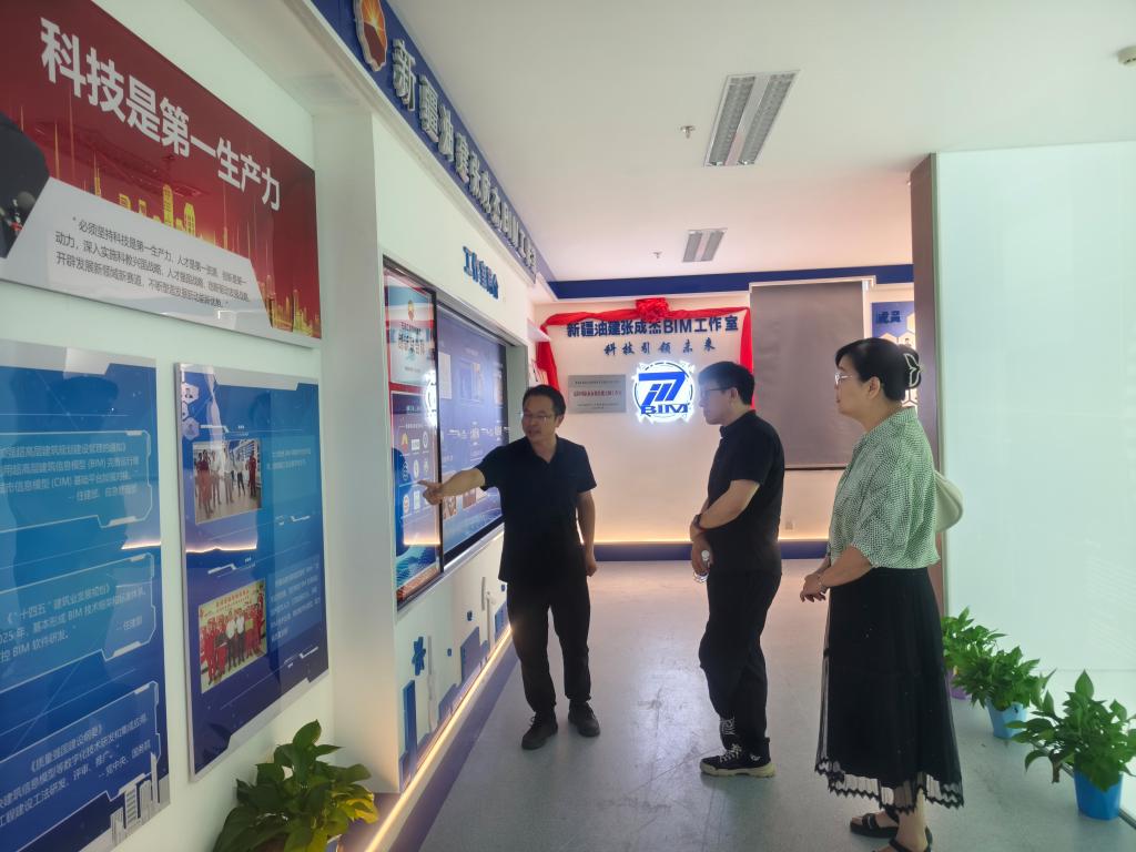 隨后,秦博士一行參觀了新疆油建張成杰BIM工作室,深入了解中油新疆油建公司在人工智能領域的創(chuàng)新成果和實踐經(jīng)驗。秦教授結合自身見解,為企業(yè)建言獻策,也為企業(yè)的發(fā)展提供了創(chuàng)新發(fā)展的思路和方向,更為下一步人工智能技術在產(chǎn)學研方面的結合搭建了平臺。