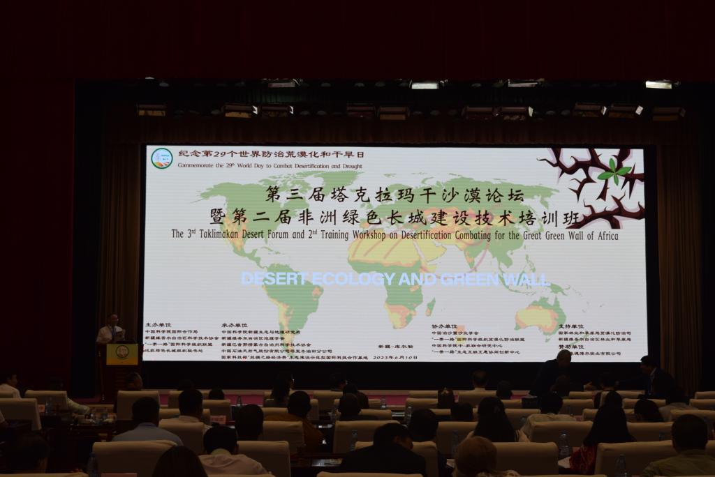 2023年6月9日—12日,第三屆塔克拉瑪干沙漠論壇暨第二屆非洲綠色長城建設技術培訓班如約而至,來自14個國家180余位荒漠化防治領域的國內科研機構、國際組織和企業代表參加了本次論壇;14位國外專家學者和15位國內專家,探討交流當前國際上最新的荒漠化防治技術成果與成功經驗。中國工程院院士、新疆科協主席鄧銘江,聯合國環境規劃署國際生態系統管理伙伴計劃(UNEP-IEMP)主任張林秀,中國科學院新疆生態與地理研究所正高級工程師王永東分別作了專題分享,為巴州荒漠化防治提供了優質參考方案。作為承辦方之一的巴州科協全程參與,全力為巴州學習全國、全世界先進經驗搭建重要平臺。