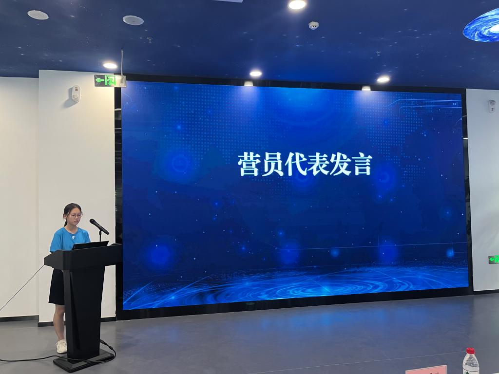 在自治區科普活動中心發營儀式上,來自庫爾勒市第四中學營員林墨作為營員代表進行發言,她說:“今天我們為了夢想聚在一起,我們即將對于青少年科技有了一個更好的認識,我們即將放飛科技夢想,揚帆起航,雖然我們來自不同地區,但是我們并不孤獨,我們擁有最誠摯的關愛,最熱情的科技心,我們相信一定可以在北京科技大學的各項科技活動中灌溉自己,為日后實現鴻志打下堅定的基礎,我們會精彩度過人生中璀璨的一周。 ”