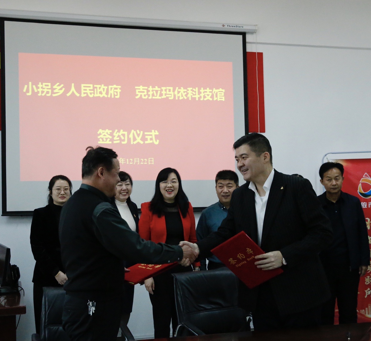 12月22日,克拉瑪依市科協舉辦小拐鄉與克拉瑪依科技館簽約暨科技館分館揭牌儀式,正式拉開了克拉瑪依市2023—2024年“科技之冬”活動的帷幕。克拉瑪依區副區長邱文、市科協黨組成員、副主席汪正巧及小拐鄉、科技館有關領導參加活動。