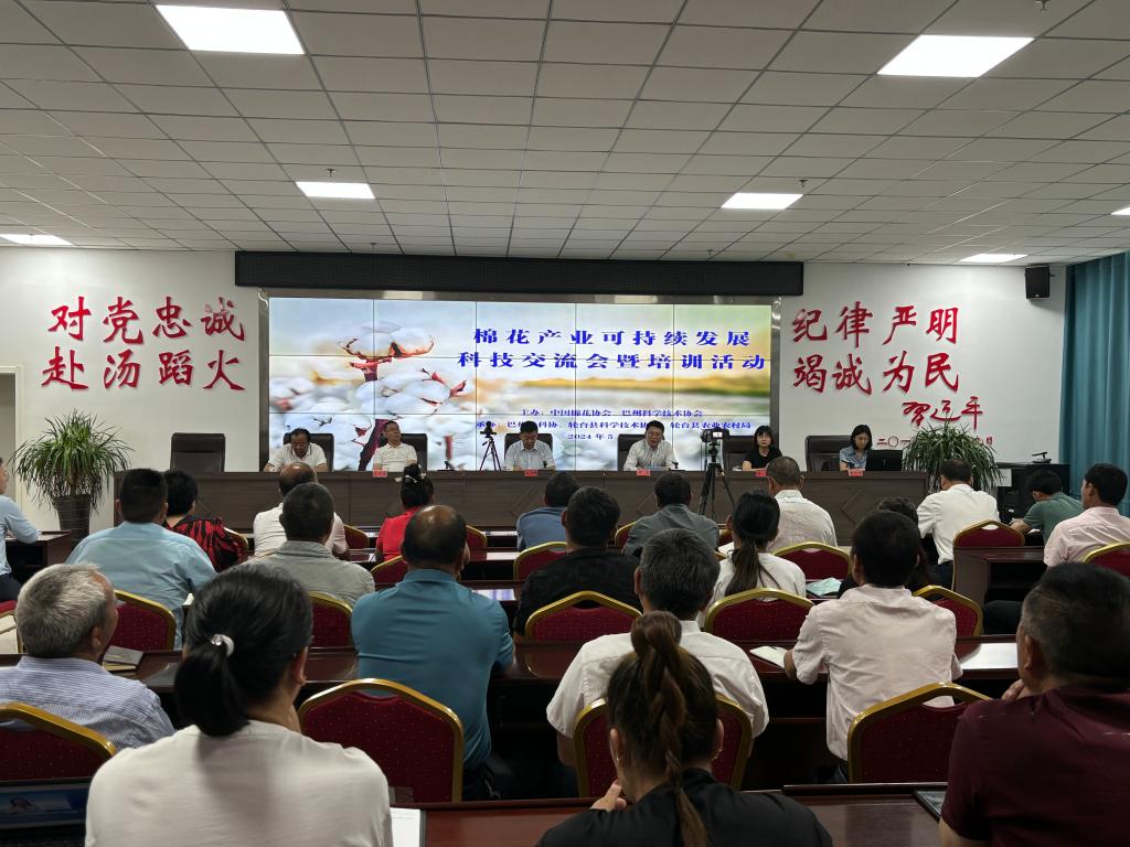 5月23日,在第八個全國科技工作日來臨之際,由中國棉花協會、巴州科協主辦,巴州老科協、輪臺縣科協、輪臺縣農業農村局協辦的“棉花產業可持續發展”科技交流會暨培訓活動在輪臺縣舉辦。輪臺縣委常委安金鵬主持會議,巴州科協黨組成員、副主席周政致辭。活動通過科普中國、巴州科協抖音平臺、中國移動和直播、輪臺零距離等平臺同步直播。