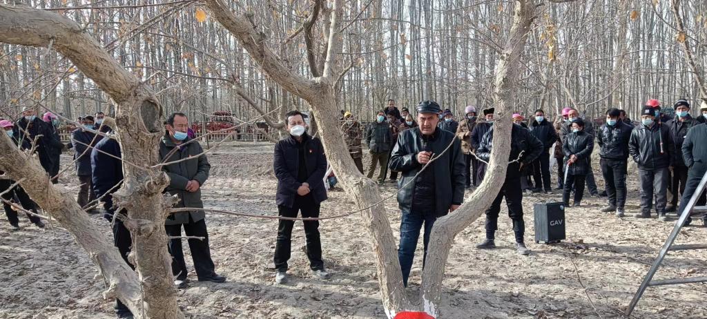 近日,和田地區(qū)科協(xié)同地區(qū)林業(yè)和草原推廣中心開展”科技之冬”活動,聯(lián)合在策勒縣開展林果業(yè)提質(zhì)增效現(xiàn)場培訓(xùn)會。各鄉(xiāng)鎮(zhèn)林業(yè)技術(shù)站人員及農(nóng)民450名人員參加培訓(xùn)。