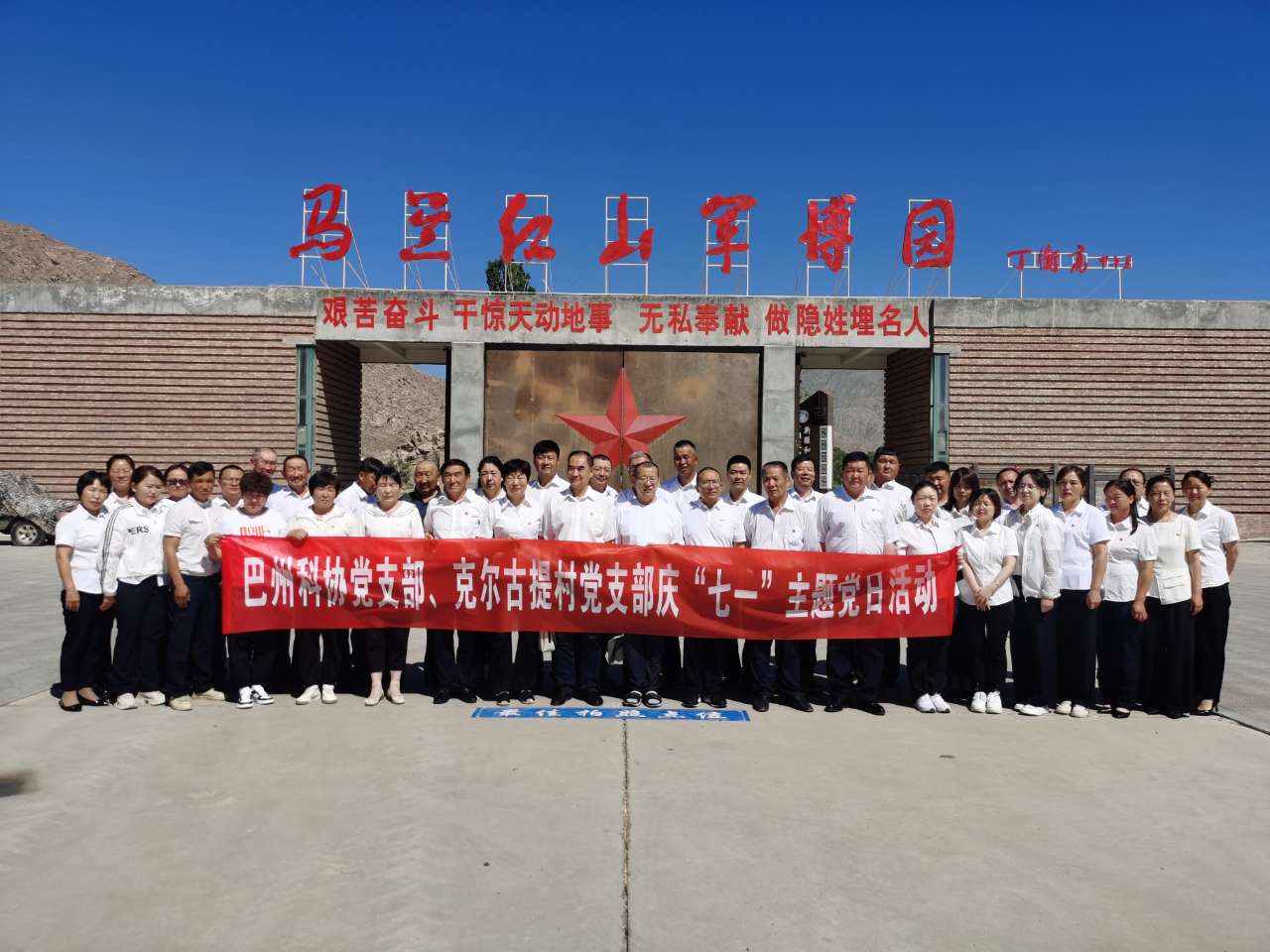 為慶祝建黨102周年,弘揚偉大建黨精神和科學家精神,6月27日,巴州科協黨支部、和靜縣克爾古提鄉克爾古提村黨支部聯合在巴州和碩縣馬蘭紅山軍博園科學家精神教育基地開展了以“忠誠擔當強黨性、爭先進位建新功”為主題的慶“七一”主題黨日活動。
