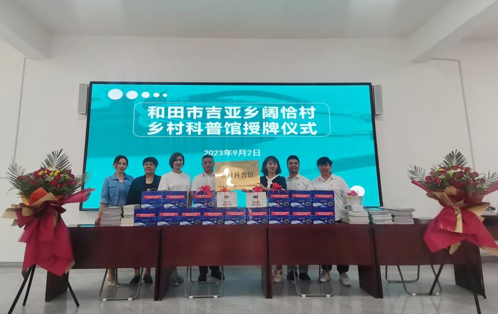 大力推進(jìn)“鄉(xiāng)村科普館”建設(shè)是深入貫徹落實(shí)《全民科學(xué)素質(zhì)行動(dòng)規(guī)劃綱要》的要求,是科技文化助力“文化潤(rùn)疆”工程的主要載體,也是大力開(kāi)展公共科普教育基礎(chǔ)設(shè)施建設(shè)的重要舉措。2023年9月2日,和田地區(qū)科協(xié)黨組成員、副主席李德偉帶領(lǐng)本單位干部、和田市科協(xié)干部、北京援疆教師代表等一行12人前往和田市吉亞鄉(xiāng)闊恰村,為本村“鄉(xiāng)村科普館”掛牌并舉辦捐贈(zèng)儀式。