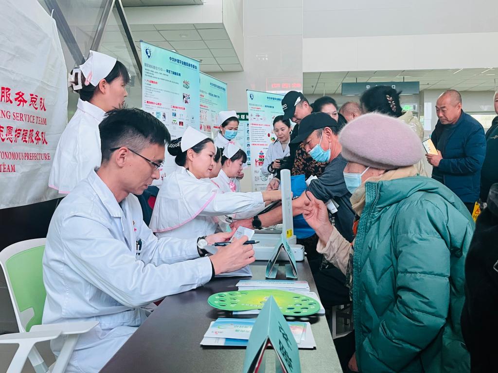 活動現場,來自塔城地區人民醫院眼科、腎病科、內分泌科、營養科的主任醫師組成的義診團隊為糖尿病及相關疾病患者提供專業的診療意見和用藥指導??破罩驹刚邽槿罕娒赓M測血糖、測尿酸,并就糖尿病患者自我管理、糖尿病并發癥預防、正確監測血糖等知識進行科普宣傳,糾正“糖友”在糖尿病防治過程的常見誤區。受益群眾500余人次,發放糖尿病防控科普宣傳手冊及宣傳品300余份。