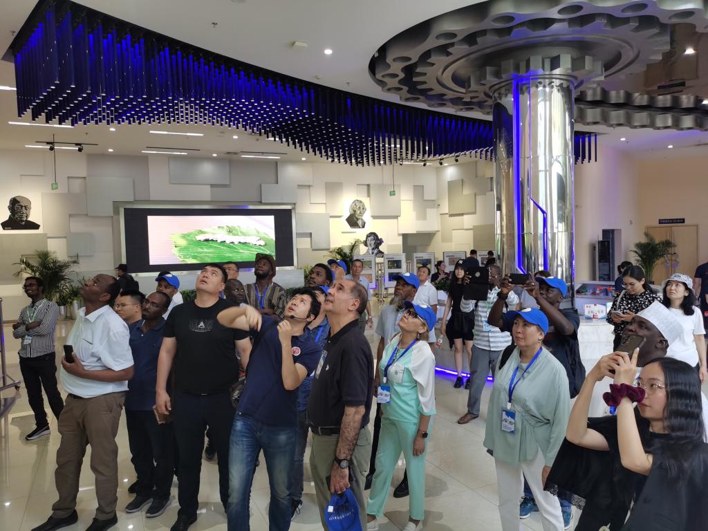 6月11日,來(lái)自第三屆塔克拉瑪干沙漠論壇和第二屆非洲綠色長(zhǎng)城建設(shè)技術(shù)培訓(xùn)班的50余名參會(huì)代表來(lái)到庫(kù)爾勒科技館和庫(kù)爾勒規(guī)劃展示館進(jìn)行參觀調(diào)研。