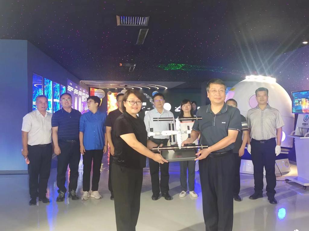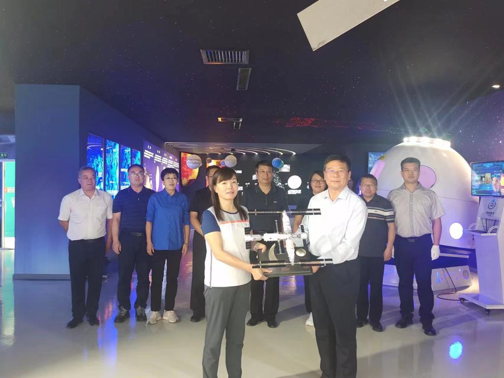 在尉犁縣,調(diào)研組一行實地參觀了尉犁縣科技館、航天館的結(jié)構(gòu)布局及展具設(shè)施等情況,并贈向科技館一件空間站模型。河北省科協(xié)對尉犁縣科普工作給予充分肯定,表示尉犁縣科技館對于聲、光、電的應(yīng)用結(jié)合和空間的利用做的很到位,在展館的設(shè)計過程中對于聲、光、電的技術(shù)手段和展示方式的應(yīng)用,增添了科普元素的多樣性,地面、墻面和頂部的空間利用的合理精彩,布局得當(dāng)。