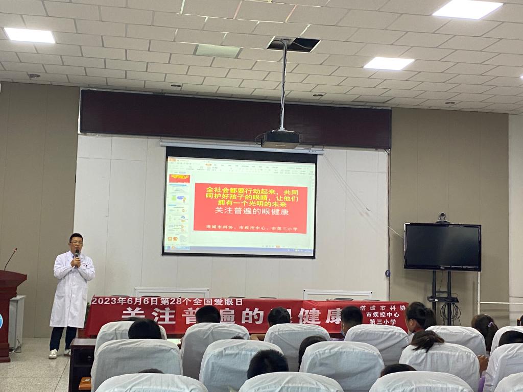 6月6日是第28個(gè)全國“愛眼日”,為進(jìn)一步提高宣傳普及眼健康科學(xué)知識(shí),6月5日下午,塔城市科協(xié)聯(lián)合塔城市疾控中心在第三小學(xué)開展近視防控專題講座。
