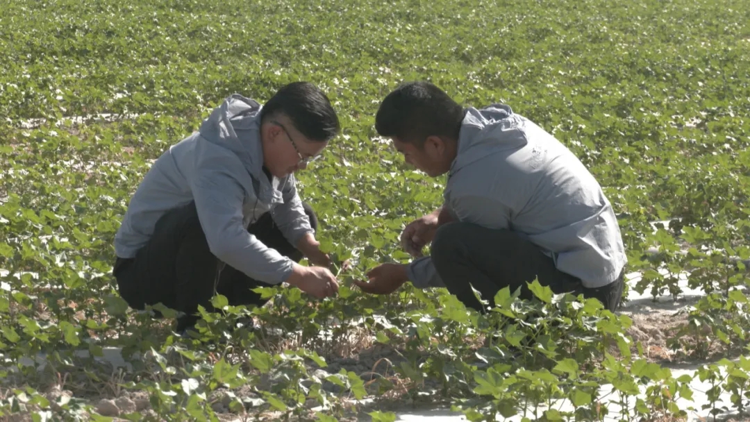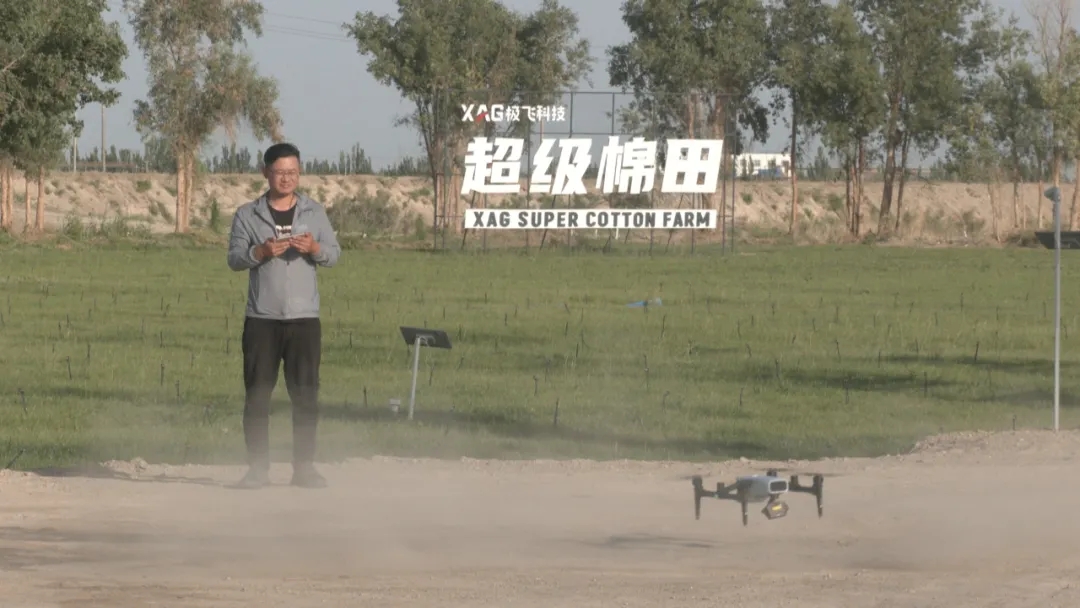 眼下,正是棉花的夏季管理階段,在尉犁縣興平鎮(zhèn)3000畝高標準農(nóng)田(超級棉田)示范基地,巴州極飛農(nóng)業(yè)航空科技有限公司的90后小伙艾海鵬和凌磊正在棉田里澆水施肥,查看棉花的長勢。