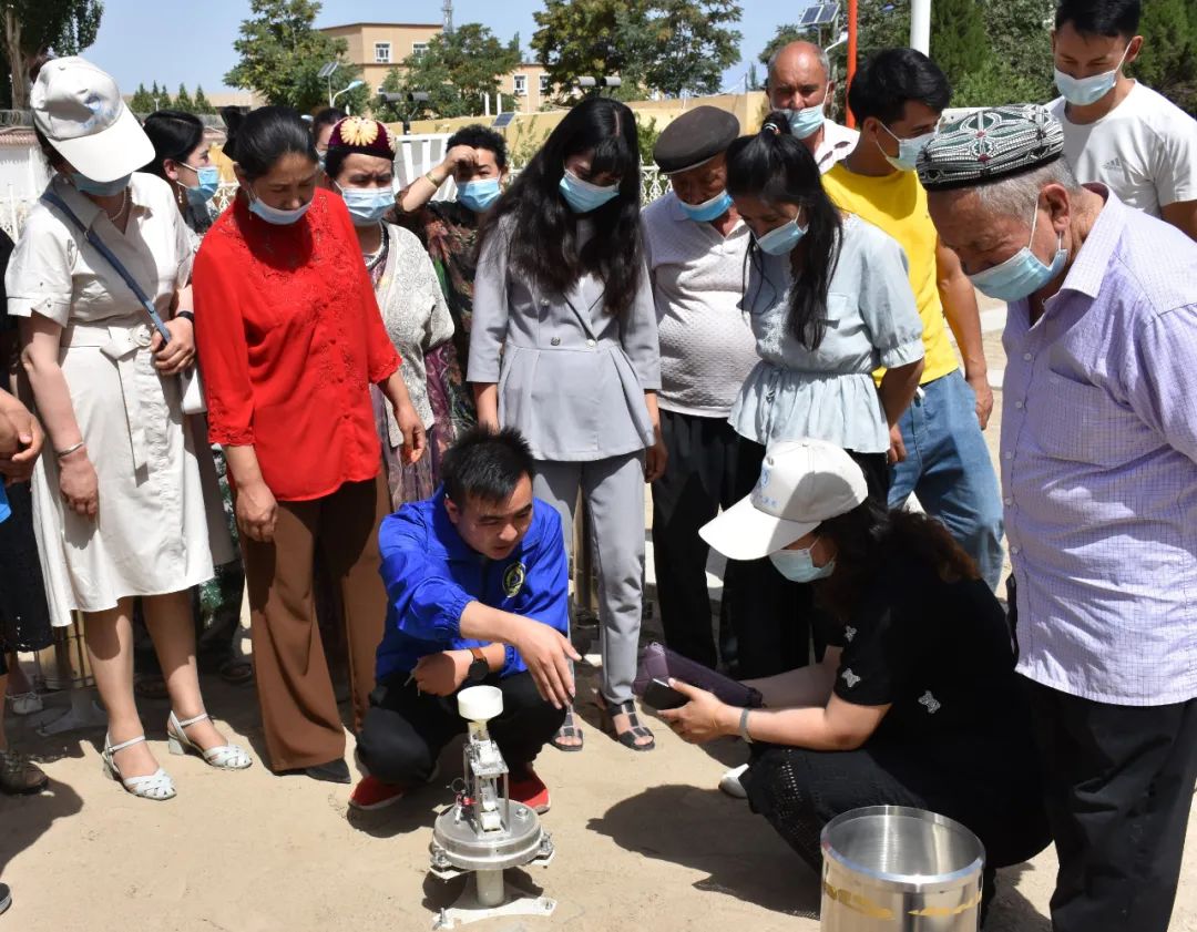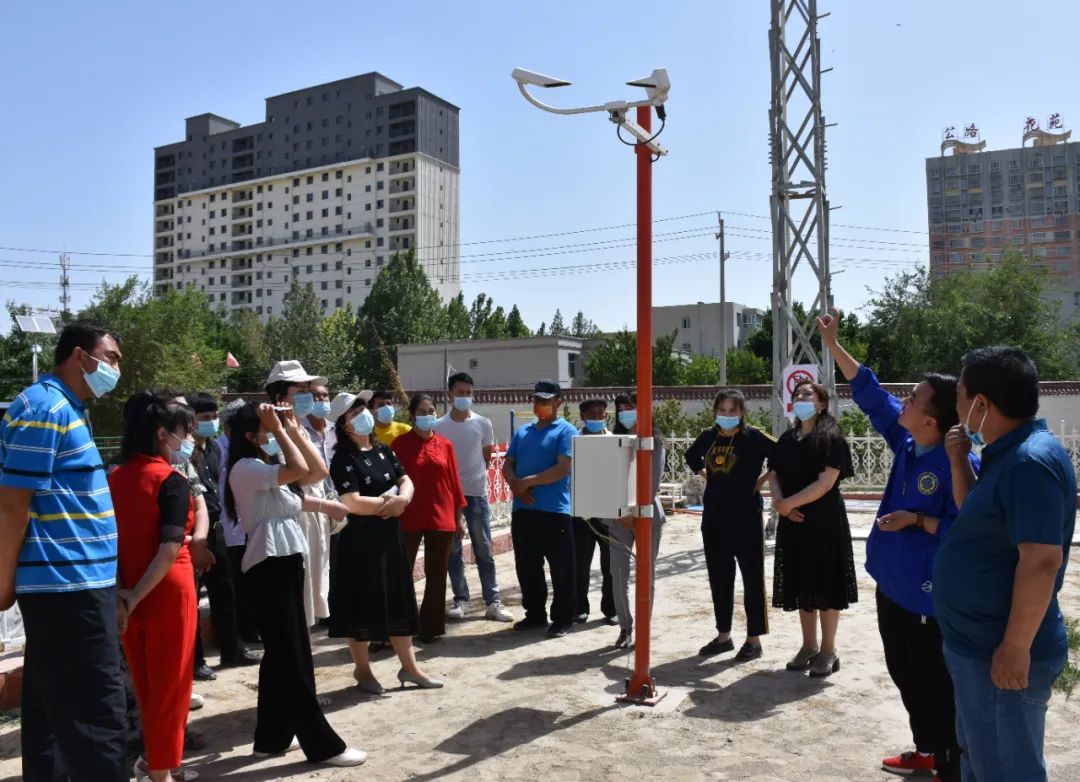 活動中,各族群眾興致勃勃地參觀風向標、百葉箱及觀測降水、日照、地溫等氣象要素儀器,了解地面氣象要素觀測、記錄、采集及發(fā)報過程,工作人員還為群眾講解各種氣候的形成、雷電的產(chǎn)生及如何科學防范氣象災害等知識。
