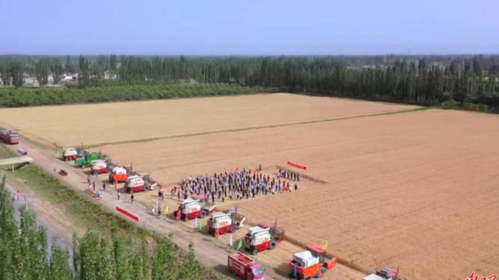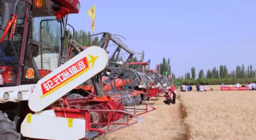 為深入貫徹落實習近平總書記關于毫不松懈抓好糧食生產和關于“厲行節約、反對浪費”重要指示精神,6月21日,輪臺縣哈爾巴克鄉吾夏鐵熱克村的麥田里,來自全縣各鄉鎮的農機農民專業合作社的10臺聯合收割機整齊列隊,參加機收減損大比武。隨著農機操作手們駕駛著收割機在金色的麥田中來回穿梭,黃澄澄的麥粒被送進了運輸車。