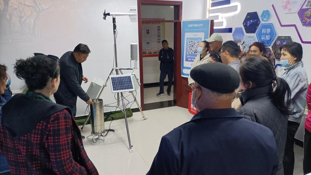 縣氣象局將便攜式地面觀測(cè)系統(tǒng)搬運(yùn)到社區(qū)科普館,氣象專家利用便攜式自動(dòng)氣象站現(xiàn)場(chǎng)解說氣象觀測(cè)設(shè)備的工作原理、所探測(cè)的氣象要素在氣象服務(wù)、災(zāi)害預(yù)警和天氣預(yù)報(bào)中的重要作用,使群眾對(duì)天氣監(jiān)測(cè)和預(yù)報(bào)預(yù)警有了新的認(rèn)知與了解。在活動(dòng)中,還給社區(qū)居民播放了“防震減災(zāi)”“氣象預(yù)警信息”“天氣安全防范”等氣象宣傳視頻,并在現(xiàn)場(chǎng)推廣“絲路氣象”APP,幫助他們?nèi)绾卫肁PP實(shí)時(shí)獲取天氣信息。