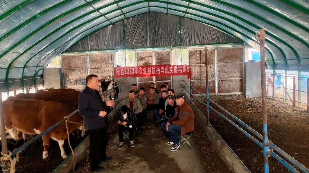 培訓學員結合塔縣實際,有針對性和實用性地開展基礎技能和專項技能培訓。此次培訓采取“理論講解+現場實戰”相結合的培訓模式,由經驗豐富的老師分別從品種改良、牛羊育肥、畜禽疫病防治知識、科學飼養等方面講解實用養殖技術,深入淺出地分析在實際生產過程中遇到的疑難問題。”