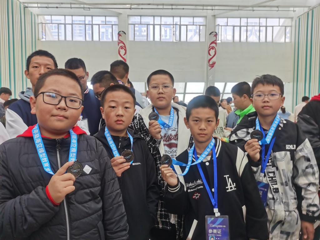 “幻影F1”電動直線車三項全能團體競賽(中學(xué)組):楊睿山、李一諾、石祥凱一組獲得一等獎(銀牌);“開拓者”太陽能汽車直線競速賽(小學(xué)男子組)周郅皓獲得一等獎(銀牌);“小馬號”橡筋動力小車直線定點賽(小學(xué)男子組)郭浚辰獲一等獎(銀牌)。