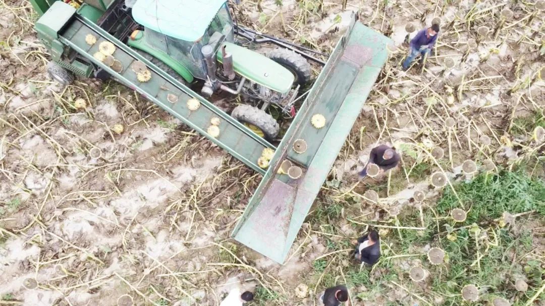 走進(jìn)田間地頭,映入眼簾的是成片的沉甸甸低頭下垂的葵花盤和農(nóng)戶們忙碌的身影,脫粒機(jī)高速運(yùn)轉(zhuǎn)吞花吐籽,處處是喜人的豐收景象。種植大戶張永芝今年流轉(zhuǎn)了鄉(xiāng)里農(nóng)戶的3000余畝土地,用來種植食葵,眼下食葵豐收,張永芝樂的合不攏嘴:“縣科協(xié)每個(gè)月都會(huì)邀請(qǐng)專家前來我們葵花地里指導(dǎo),讓我們受益匪淺,今年葵花每畝地產(chǎn)量大概有230公斤左右,每畝可以達(dá)到3000塊錢的收入,還有指定的廠商來收購(gòu),銷路這塊我們也不用發(fā)愁。”