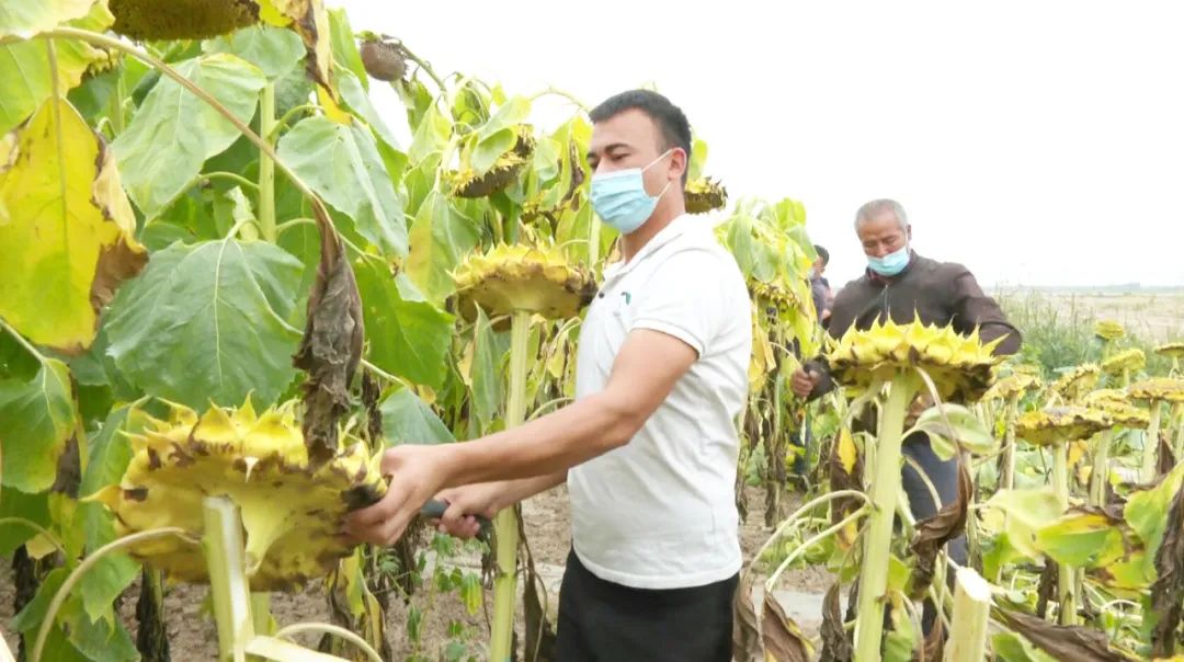 葵花種植從播種、減苗、澆灌、收割再到脫粒,都需要大量的勞動(dòng)力,為周邊群眾就近務(wù)工提供了新渠道。近年來,托克遜鄉(xiāng)持續(xù)推進(jìn)農(nóng)業(yè)專業(yè)化、規(guī)?;a(chǎn),不斷調(diào)整優(yōu)化農(nóng)業(yè)產(chǎn)業(yè)結(jié)構(gòu),大力發(fā)展經(jīng)濟(jì)作物種植,推動(dòng)特色農(nóng)業(yè)高質(zhì)量發(fā)展。拜城縣科協(xié)負(fù)責(zé)人說:“近年來,托克遜鄉(xiāng)通過科普惠農(nóng)一攬子措施,大力調(diào)整優(yōu)化產(chǎn)業(yè)種植結(jié)構(gòu),發(fā)展食用葵種植,經(jīng)濟(jì)效益可觀,為鄉(xiāng)村特色產(chǎn)業(yè)發(fā)展奠定了基礎(chǔ)?!?/p>