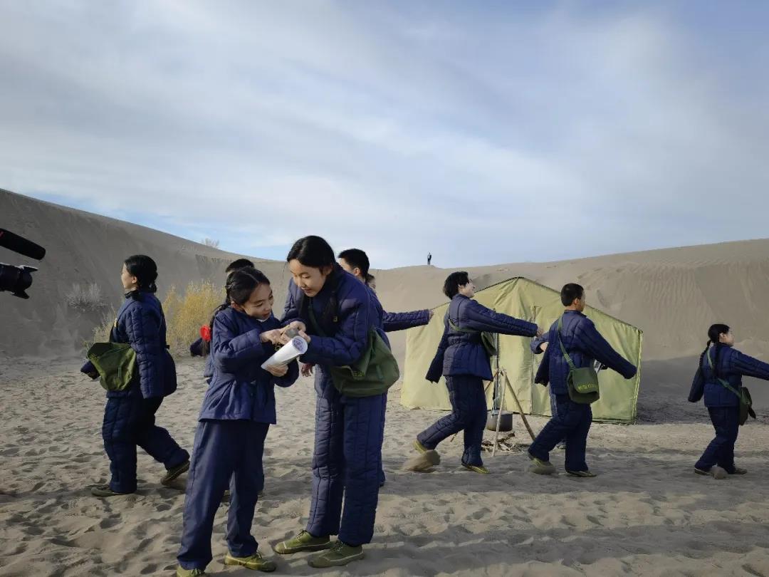 近一個月的排練時間,傾注了所有主創人員和小演員們的心血,大家穿越時空親身感受老一輩石油人的艱辛。井架、冰人、年代棉服、膠皮鞋、沙漠……處處展現了克拉瑪依油田開發初期的歷史場景,這些立體生動的場景讓師生們仿佛重新回到了那段60年前的舊時光。油田開發初期,條件艱苦,所有建設完全靠人抬靠肩扛,老一輩石油人不怕苦不怕累,電影中最后一個場景是隊長用身體堵住噴發的石油,感受到了石油人天不怕地不怕的犧牲精神,孩子們都表示要將石油精神代代傳承。