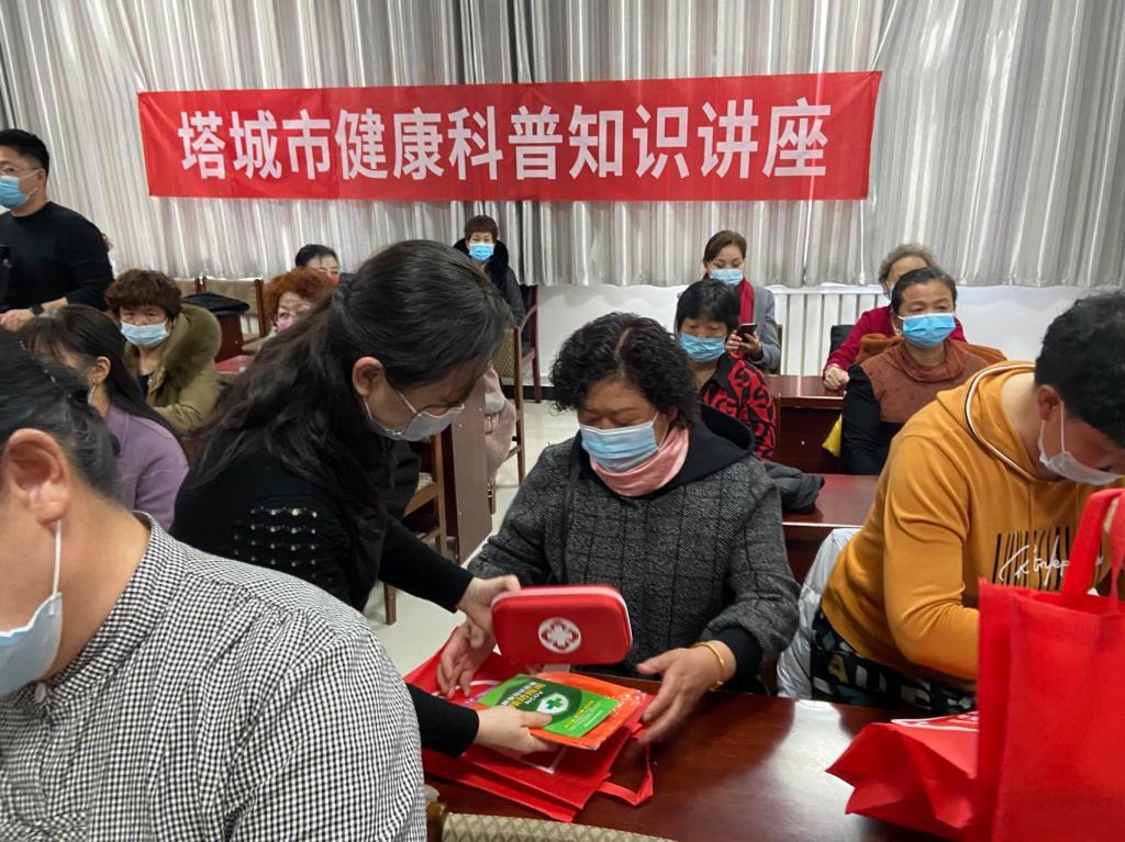 講座結束后,塔城市科協(xié)工作人員為參加講座的社區(qū)居民發(fā)放裝有家庭小藥箱、印有防疫知識的圍裙、新冠疫情防控手冊的健康禮袋。