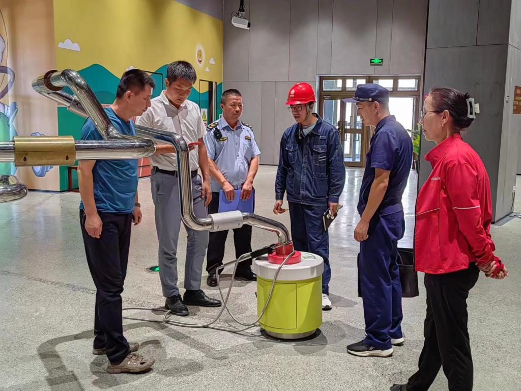 工作人員先后檢查了科技館各項展廳項、消防設施、安全疏散通道等重點安全部位,同時對電線、供水設備及攀巖、戲水樂園等互動設備進行了安全性能的檢查。