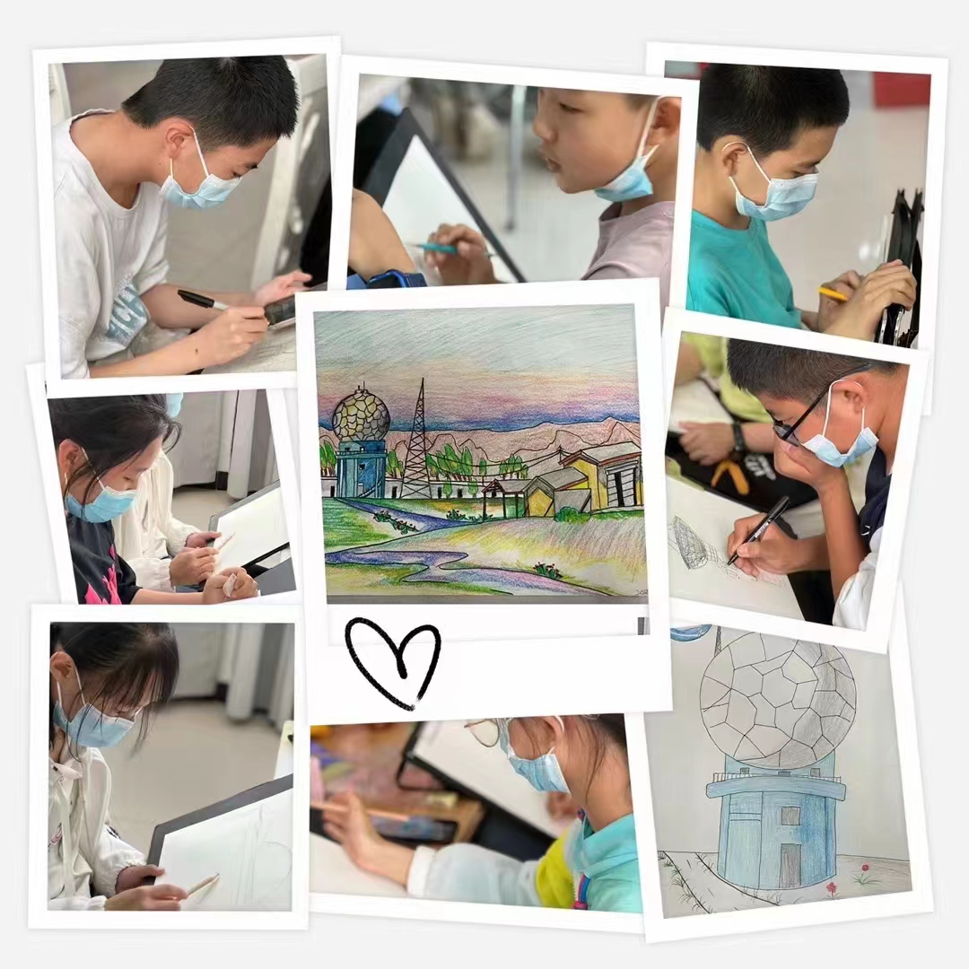 小朋友們在老師以及家長的指導下非常認真地作畫,不到半小時的時間,很多小朋友完成了繪畫作品,有的小朋友畫的是身邊的天氣現象,有的小朋友則是運用天馬行空的想象力畫著未來氣象站的情況。一幅幅色彩鮮艷的繪畫作品從小朋友的手中誕生,也從此在小朋友的心中播下科學的種子。