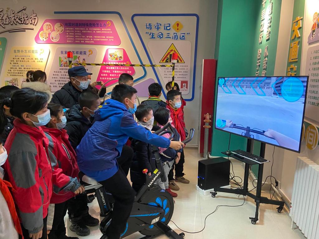 隨后,同學們又來到了消防科普教育展廳,了解火災、地震發生原因,學習災害發生后自救知識,體驗地震小屋和怒發沖冠等科普展品。參觀過程中,同學們對各類科普展品產生了濃厚的興趣,紛紛上前體驗,進距離感受科技魅力。