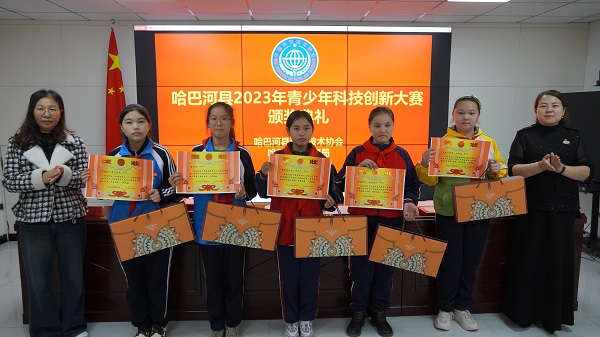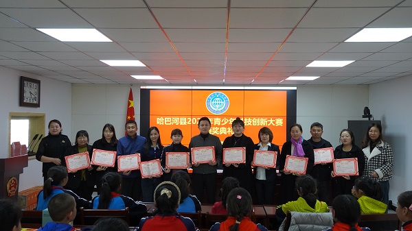 活動現場,哈巴河縣科協負責人向獲獎學生和老師發放榮譽證書及獎品,獲獎學生代表和老師代表發表獲獎感言。