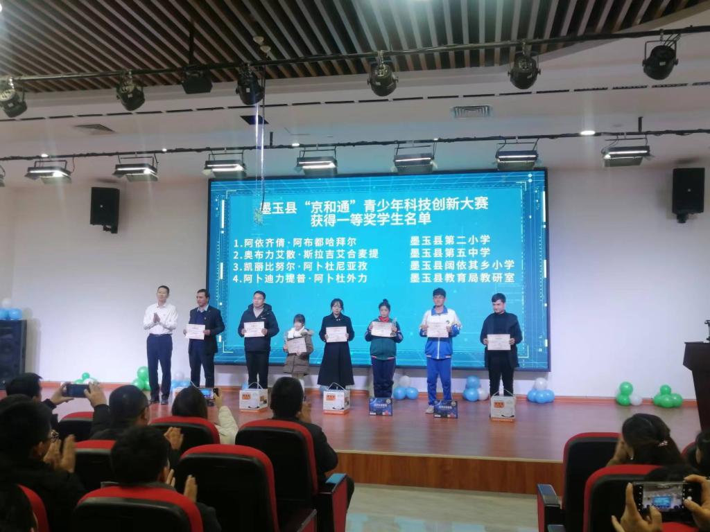 12月16日頒獎儀式在北京市援建的墨玉縣青少年校外活動中心隆重舉辦。墨玉縣委常委王啟亮,地區科協、墨玉科協、教育局、工會、團委的負責人共同出席了頒獎儀式,現場觀看頒獎儀式的還有各中小學校師生代表近200人。