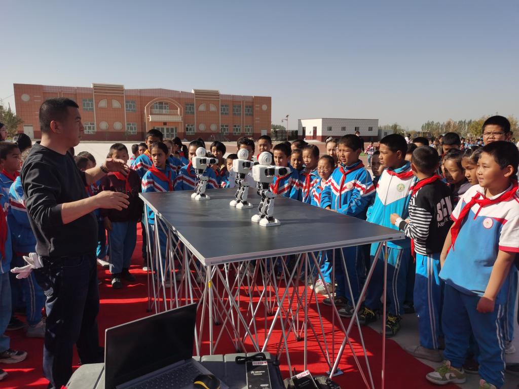 活動中準備了展板、智能機器人、飛行器等科普展品整齊擺放在校園內,吸引了一雙雙好奇的眼睛,學生分批次體驗科技展品,每一件展品都深受學生們的喜愛。通過科技科普志愿者的現場講解,結合展品上的操作說明,學生們在互動中學習科學知識,在活動中提升科學素養。通過科普大篷車進校園活動的開展,為學生們打開了科學的窗戶,埋下了探索科學的種子,點燃了孩子們對科學的求知欲和探索欲。