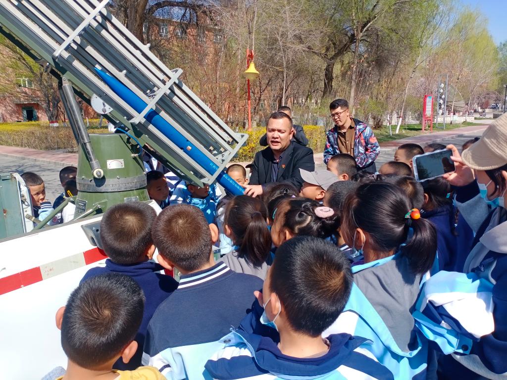 隨后,氣象站科普志愿者帶領(lǐng)學(xué)生來(lái)到“打云炮”的車(chē)前,向?qū)W生耐心細(xì)致地講了“”打云炮”的作用,學(xué)生們聽(tīng)得津津有味。