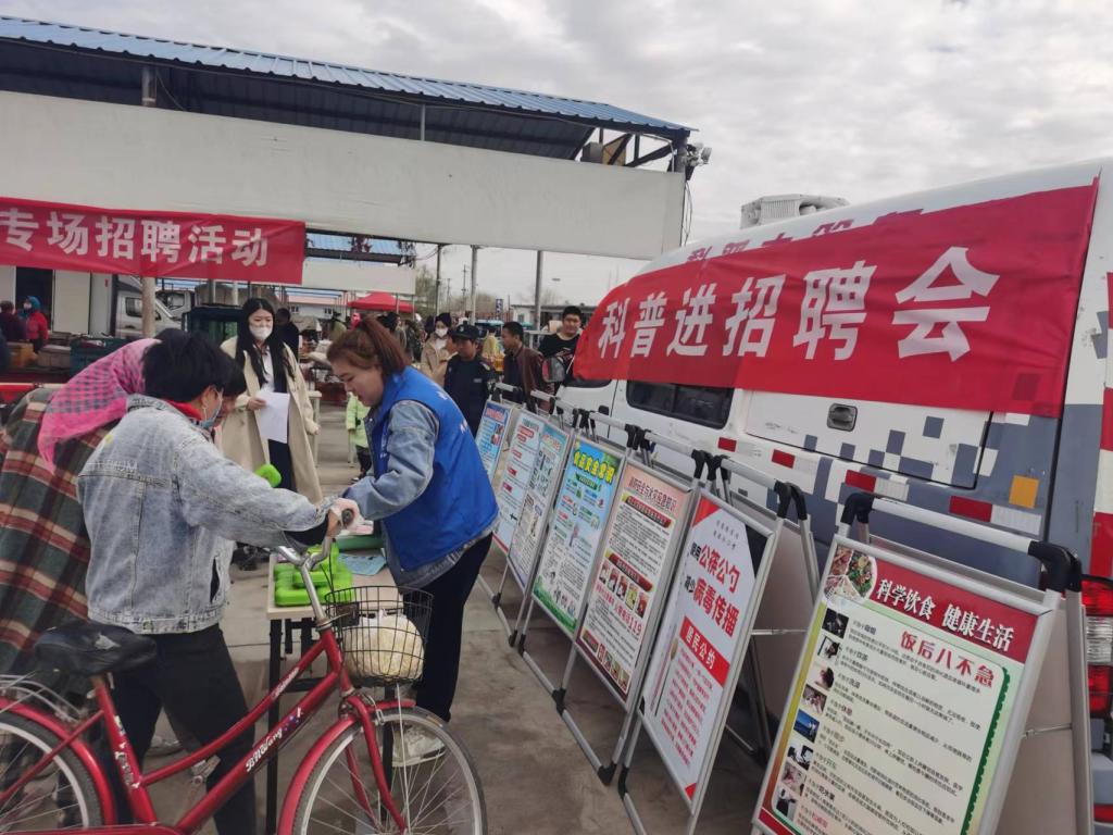 4月16日,烏蘇市科協(xié)在哈圖布呼鎮(zhèn)貿(mào)易市場招聘會開展“科普進(jìn)招聘會”科技志愿服務(wù)宣傳活動。