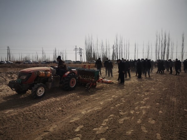 最后,種植戶在技術人員的指導下,開展春小麥種植技術示范演示,并向農民發放春小麥播種技術要點宣傳資料200余份。