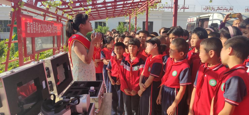 5月16日,溫宿縣科協在古勒阿瓦提鄉小學開展以“科普實驗秀”為主題的科普進校園志愿服務活動。