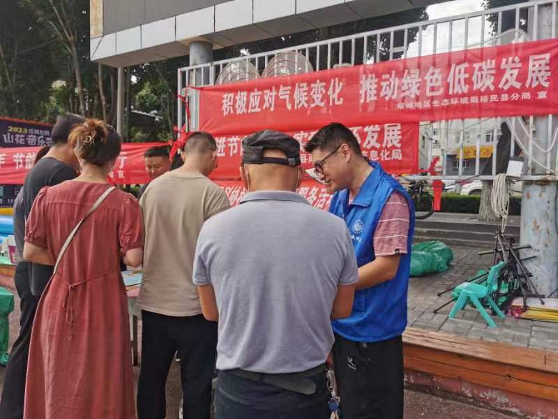 活動現場,科普志愿者們緊扣活動主題,為居民宣傳低碳知識、可持續發展的生活和消費方式、日常節能節水知識等相關內容,并通過在服務大廳、農貿市場、商場等在公共場所張貼宣傳畫、擺放展板、懸掛橫幅、發放宣傳手冊、志愿者進小區與居民互動等多種形式,弘揚綠色低碳發展理念,宣傳節能降碳科普知識。倡導廣大居民群眾從自己身邊的節約一滴水、節約一度電、節約一張紙做起,出行乘座公共交通工具,科學使用辦公及家用電器,合理降低能源消耗。