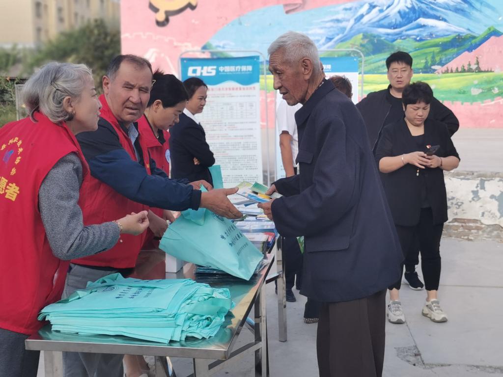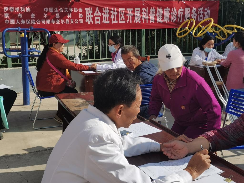 9月11日上午,察布查爾縣科協、老科協聯合中國生命關懷協會、縣醫保局、縣人壽保險公司在法里春社區開展科普健康診療服務進社區活動。