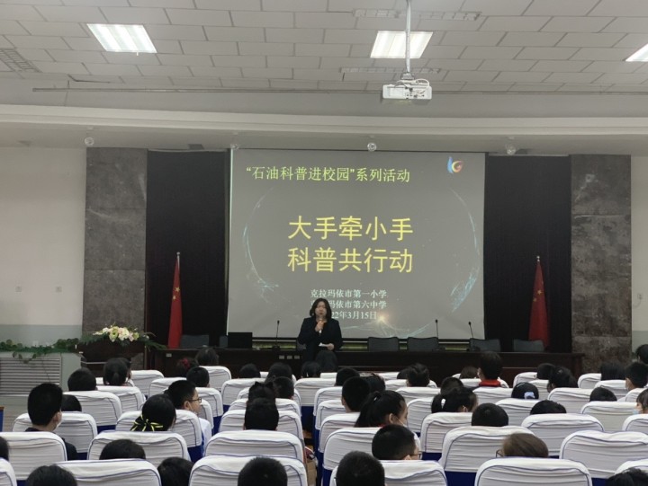 3月15日下午,克拉瑪依市第一小學五級部全體師生在克拉瑪依區(qū)科協(xié)以及第六中學師生的大力支持下,開展了“石油科普進校園”系列實踐活動——石油知識綜合實踐活動課程經驗介紹主題講座。