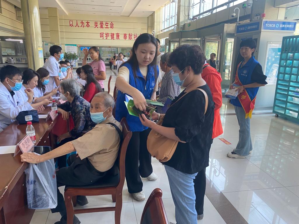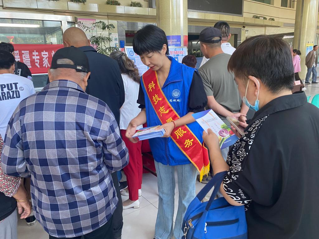 在義診活動現場,醫療科技工作者們為前來參加活動的群眾免費義診,提供健康咨詢、血壓測量等個性化服務。隨后,科普志愿者們發放食品藥品小常識和科普健康、科普健康養生等手冊。同時,向前來參加活動的群眾介紹塔城市人民醫院第八批沈陽“組團式”醫療援疆的專家,科普殘疾預防相關知識。