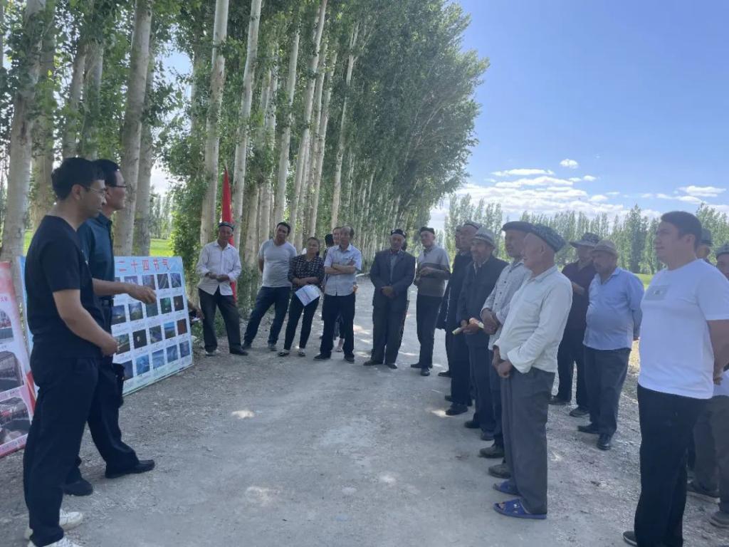 和靜縣哈爾莫敦鎮為進一步鞏固和靜縣造林綠化成果,邀請和靜縣科技特派員來到哈爾莫敦村小滿輪值長古麗先家的小麥地前向村民們宣講防護林的重要性以及防蟲防害等技術要點。科技特派員艾力江·庫爾班說:“現在正是林木害蟲孵化高峰期,我們將林木蟲害防治與小滿節氣活動結合起來,極大地提高了老百姓的興趣與防治意識,為長期做好防治工作打牢了基礎。”