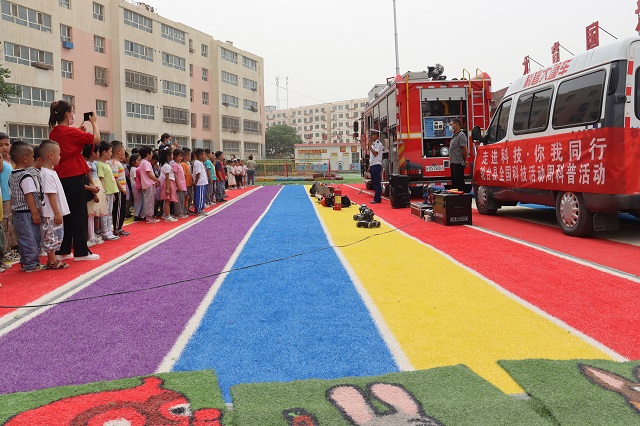 5月27日,“六一”國際兒童節來臨之際,為提升青少年對消防安全的認知水平,營造更加安全和諧的良好社會環境,輪臺縣科協聯合縣消防大隊,分別在輪臺縣第一幼兒園、輪臺縣新世紀博愛幼兒園開展以“快樂六一,科普“童”行”為主題的科技周系列科普活動。幼兒園400多名幼兒在做好疫情常態化防控的同時,有組織有順序分批次地進行了參觀和體驗。