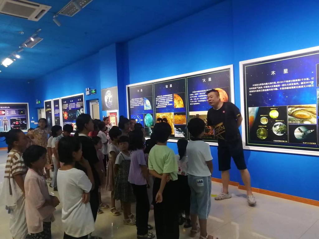 講解員給青少年講解星空知識,引導(dǎo)啟迪孩子們對神秘宇宙的好奇心。