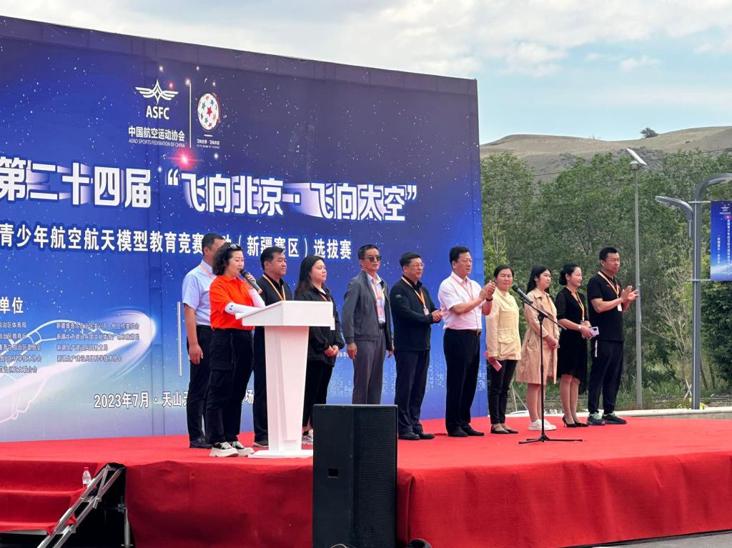在自治區第二十四屆"飛向北京飛向太空"全國青少年航空航天教育競賽(新疆賽區)選拔賽在阜康天山天池國際滑雪場開賽,來自全疆35支代表隊、800名青少年運動員同臺競技展風采。