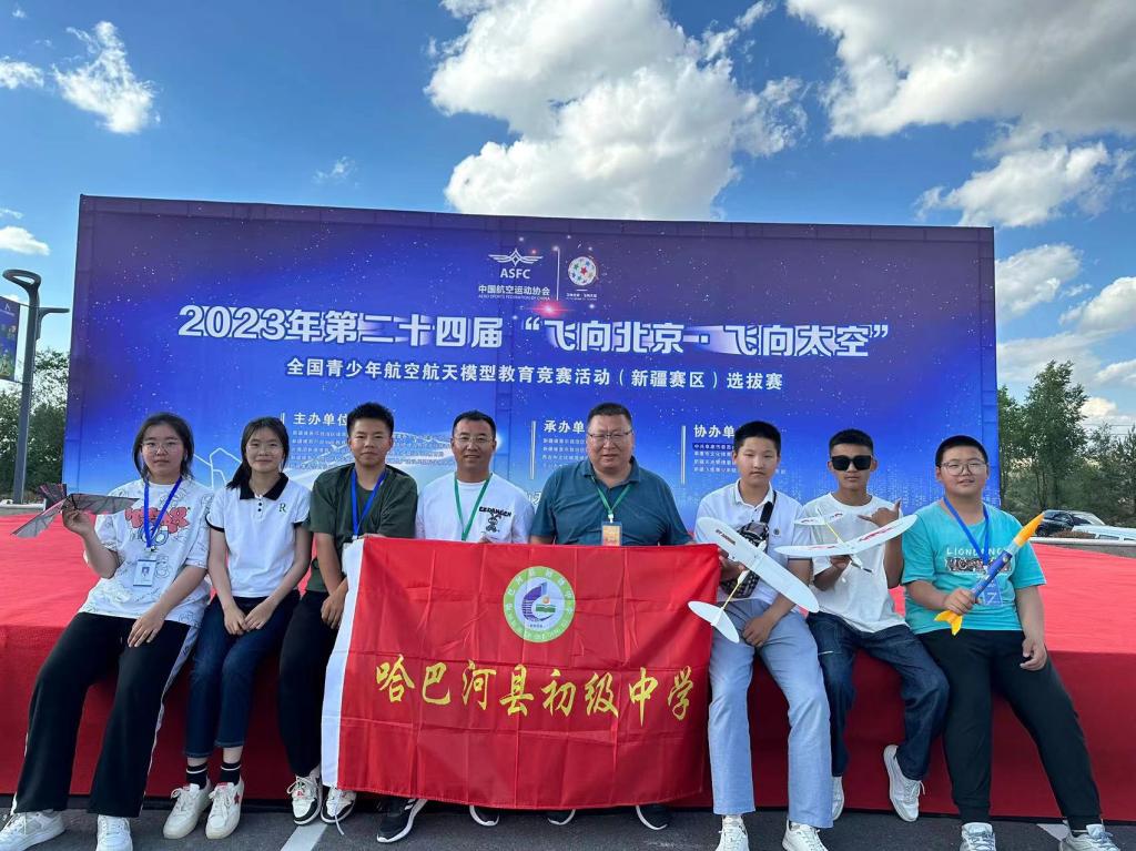 選拔賽中,哈巴河縣共選派17名學生參加比賽,經過3天緊張、激烈的賽程。哈巴河縣初級中學張珂在初中男子組電動模型滑翔機比賽項目中獲第一名(金牌)、張振宇、李世杰榮獲獎優勝獎;程浩然、周郅澔獲小學男子組三等獎;李洪濤在初中男子組傘降火箭項目中獲第二名(銀牌)。趙旸葉在初中女子組橡筋動力撲翼機項目中獲第二名(銀牌);趙嘉琪榮獲優勝獎。高沛然獲小學男子組第一名(金牌),閆晟睿、楊睿山獲二等獎。在仿真紙折飛機項目中,茹亞澔獲得第三名(銅牌)。