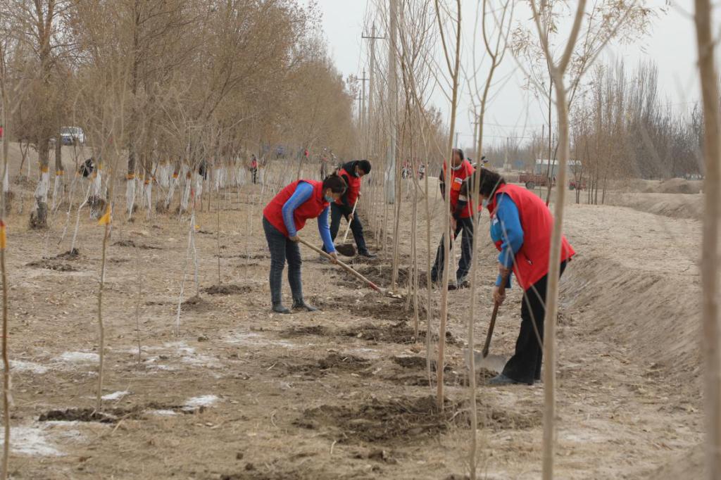 植樹現場,沙雅縣科協干部職工們個個熱情高漲、干勁十足,大家各司其職,扶正樹苗、揮鍬鏟土、提水灌溉,為大地添新綠。通過此次活動,不僅發揚了科協干部職工團結、互助、友愛精神,還激發了各族群眾參與造林綠化的積極性和愛綠護綠意識。