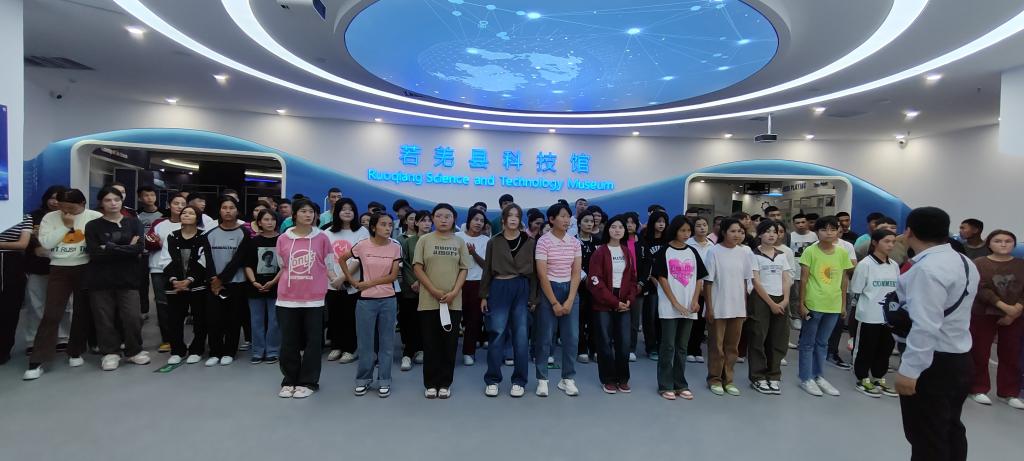 2023年8月30日,若羌縣中學高一的學生們在軍訓教官的帶領下來到了若羌縣科技館參觀體驗。