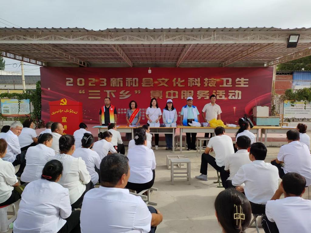 近日,由縣委宣傳部,衛健委、教科局、農業農村局、科協、婦聯等14家縣直單位組織的志愿者分兩組在新和鎮團結社區和熱斯特社區開展新和縣2023年文化科技衛生“三下鄉”服務示范活動。