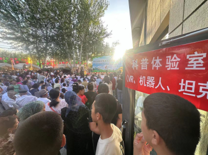 科普大篷車滿載著各種科普展品,展出的全地形探測小車、無人機和VR眼鏡等,吸引了眾多群眾駐足觀看。通過親身體驗和互動,群眾深刻感受到了科學的魅力。