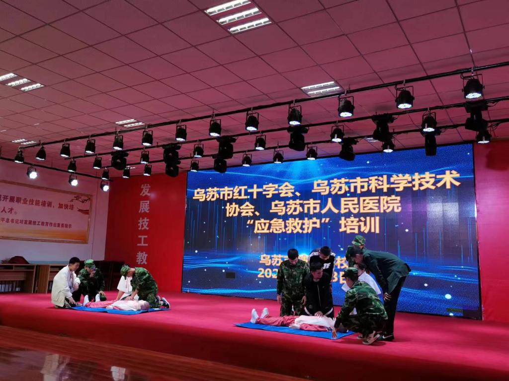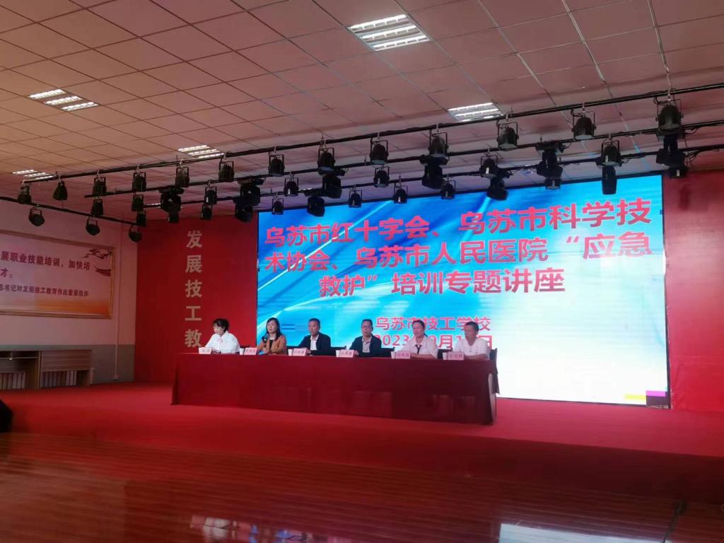為深入開(kāi)展“平安校園”建設(shè),普及自救互救的知識(shí)和技能,增強(qiáng)學(xué)校師生的現(xiàn)場(chǎng)急救意識(shí),提升其基本救護(hù)知識(shí)及技能,助力師生能有效應(yīng)對(duì)可能出現(xiàn)的突發(fā)情況,9月14 日,烏蘇市科協(xié)聯(lián)合烏蘇市紅十字會(huì)、烏蘇市人民醫(yī)院走進(jìn)烏蘇市技工學(xué)校,開(kāi)展全國(guó)科普日系列活動(dòng)——應(yīng)急救護(hù)培訓(xùn)專題講座,為技工學(xué)校百余名師生進(jìn)行授課。