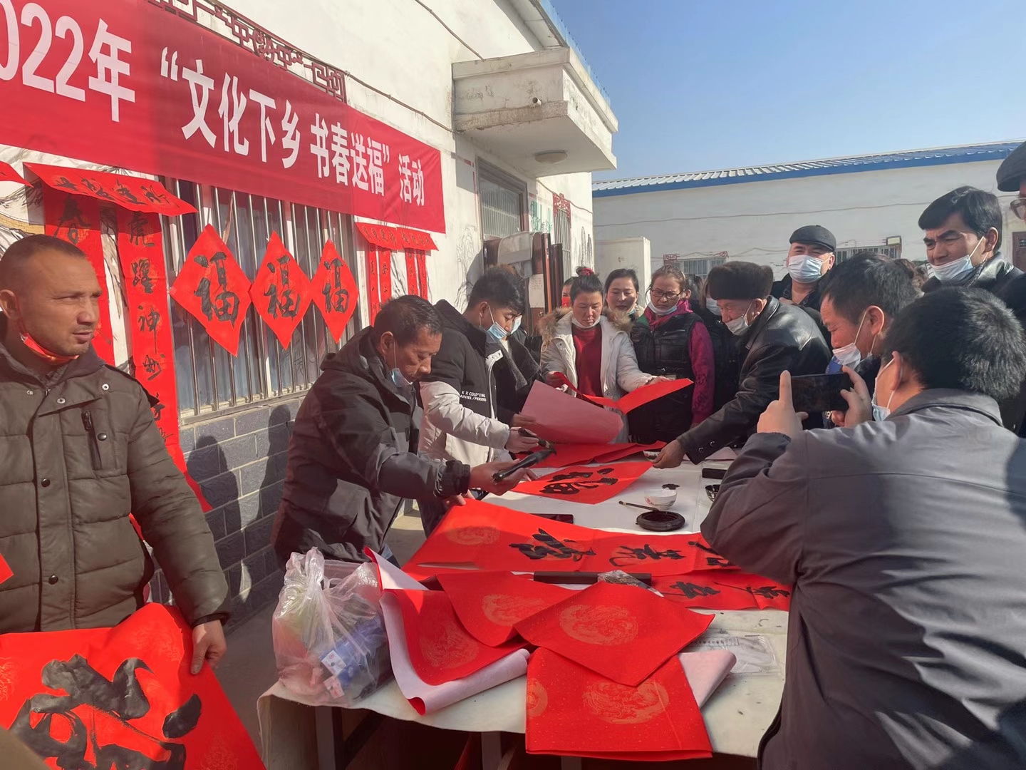 活動現場,人頭攢動,熱鬧非凡,大家滿懷崇拜的觀看書法老師們的精彩創作,書法老師們憑借專業的手法把新春的祝福化作一幅幅喜慶的對聯,并免費共贈送給在場廣大農民群眾,受到廣大農民群眾的熱烈歡迎和廣泛肯定。