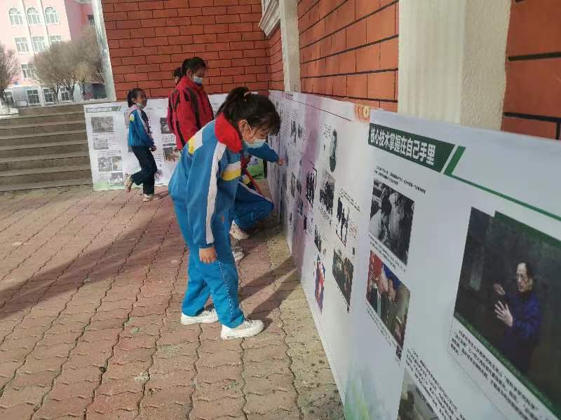 溫泉縣科協工作人員將16塊科學家精神展板陳列在溫泉縣城鎮小學,由學??萍驾o導員進行保管,組織學生進行觀摩科學家精神展板。
