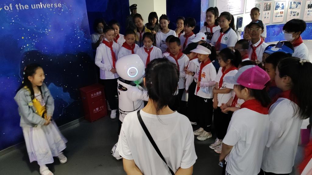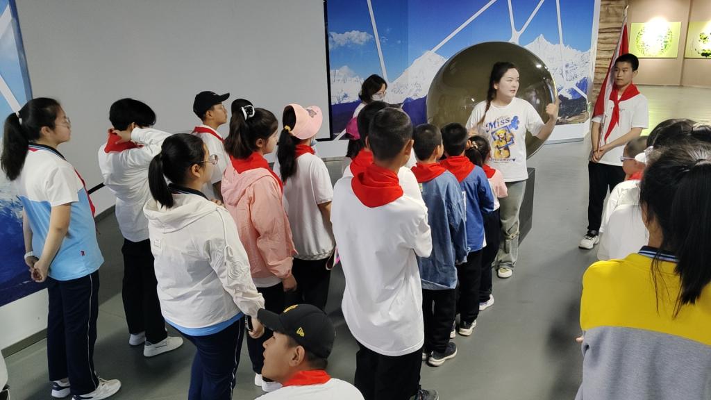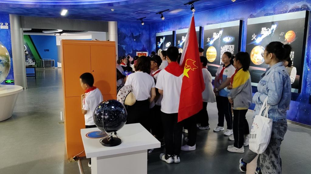 走進(jìn)科技館展廳,同學(xué)們立刻被高科技模型深深吸引。場館設(shè)置了科學(xué)家精神展廳、宇宙奧秘廳、航天技術(shù)廳、生命演化廳、防災(zāi)減災(zāi)廳等主題展區(qū)。在科技館工作人員的帶領(lǐng)下,同學(xué)們分小組在講解員的帶領(lǐng)下,一邊聽著講解,一邊仔細(xì)地閱讀著介紹,偶爾操作著各種模型。遇到看不懂的,甚至還請工作人員幫忙重復(fù)講解。一上午,同學(xué)們在科技的海洋里盡情地遨游。
